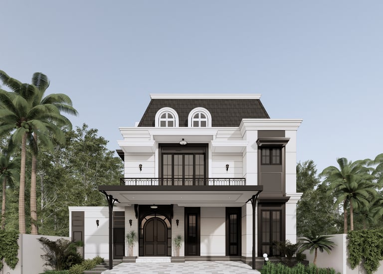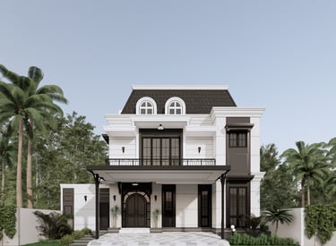 Desain rumah American Classic dengan komposisi fasad simetris, pilar tegas, serta detail molding yang elegan. Tata ruang dirancang proporsional dan megah, menghadirkan hunian berkarakter kuat dengan kesan mewah, timeless, dan bernilai investasi tinggi.